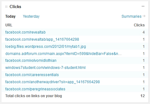 Most of the dashboard statistical categories have a link to summarized information that displays extensive historical information. These summaries are important to good blog management.