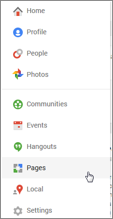 - Mouse over the Home button on the top left to expand the Google drop down menu and click on the “Pages” icon.